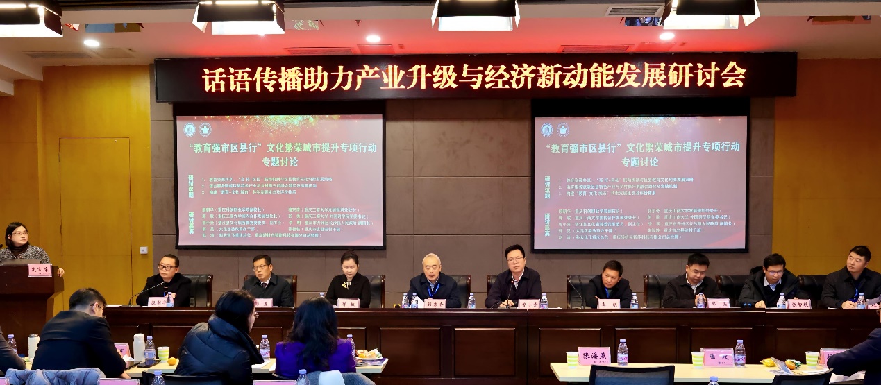 在深入贯彻落实党的二十大关于“促进城乡融合发展”战略部署、学习贯彻党的二十届四中全会精神,积极响应重庆市委“打造政产学研用创新综合体”号召的背景下,2025年12月5日至7日,由重庆市社科联指导、重庆工商大学外国语学院主办的“话语传播助力产业升级与经济新动能发展”研讨会在该校成功举行。学校党委常委、纪委书记、重庆市监委驻学校监察专员张海燕、重庆市社会科学界联合会综合党委副书记、学会学术部副部长陆玫莅临指导并致辞。发展规划处、国内合作发展处负责人,四川外国语大学、中国语言产业研究院及来自多所知名高校的专家,与市内外30余所高校师生,以及开州、垫江、大足、忠县等区县政府及企业代表共计200余人齐聚一堂,共话发展。本次会议紧密围绕“教育强市区县行”核心任务与文化繁荣消费主题,深入探讨教育、文化、话语传播与区域高质量发展的融合路径。与会专家一致认为,区县是推动城乡融合、激发内生动力的关键单元,而话语传播在链接资源、塑造形象、引导预期、促进消费方面发挥着不可替代的“催化剂”作用。