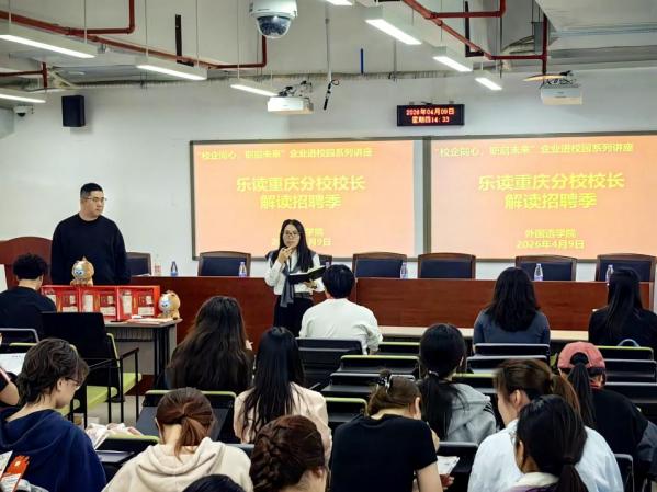为扎实推进2023级学生实习就业工作,深化校企协同育人,4月9日,外国语学院在涵智楼1108举办“校企同心,职启未来”企业进校园系列讲座。乐读重庆分部校长及企业代表莅临,学院党委副书记吴欢欢、就业联络员杨香艳出席,2023级全体同学参加。