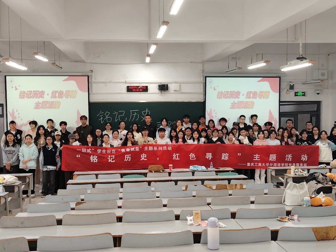 为纪念世界反法西斯战争胜利暨中国人民抗日战争胜利80周年,弘扬伟大抗战精神,2025年11月8日14:00-16:00,外国语学院党员服务站在南岸校区成功举办“铭记历史·红色寻踪”主题活动,吸引了100余名学生参与。