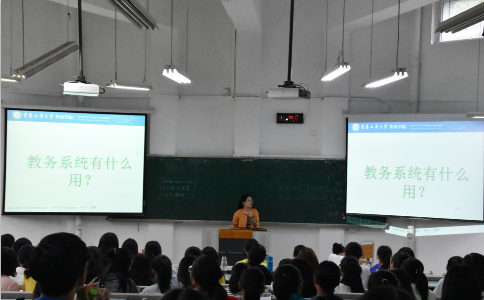 2017年9月21日下午2:30,外语学院2017级新生专业教育在兰花湖片区广智楼20204教室隆重举行。本次新生入学教育活动由外语学院2017级辅导员黄志婕老师主持,外语学院党总支书记陈晓东、院长戴运财、副院长周琳、党总支副书记陆嘉等学院领导出席了本次教育活动。